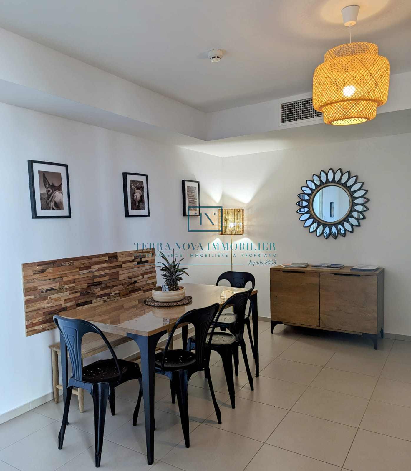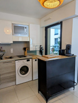Terra Nova Immobilier vous invite à venir décourvrir ce bel appartement implanté dans la "Résidence Côté Plage". Entièrement climatisé, il se compose d'un salon spacieux et lumineux ouvert sur une cuisine aménagée, de deux chambres avec terrasse. Une chambre avec lit double (160) et la seconde avec deux lits simples (90) pouvant être assemblé, d'une salle de bain et d'un toilette séparé. L'appartement est parfaitement conçu pour vous offrir tout le confort recherché. Envie d'une baignade? sans problème! Vous pourrez rejoindre la plage directement depuis l'ascenseur de la résidence.
