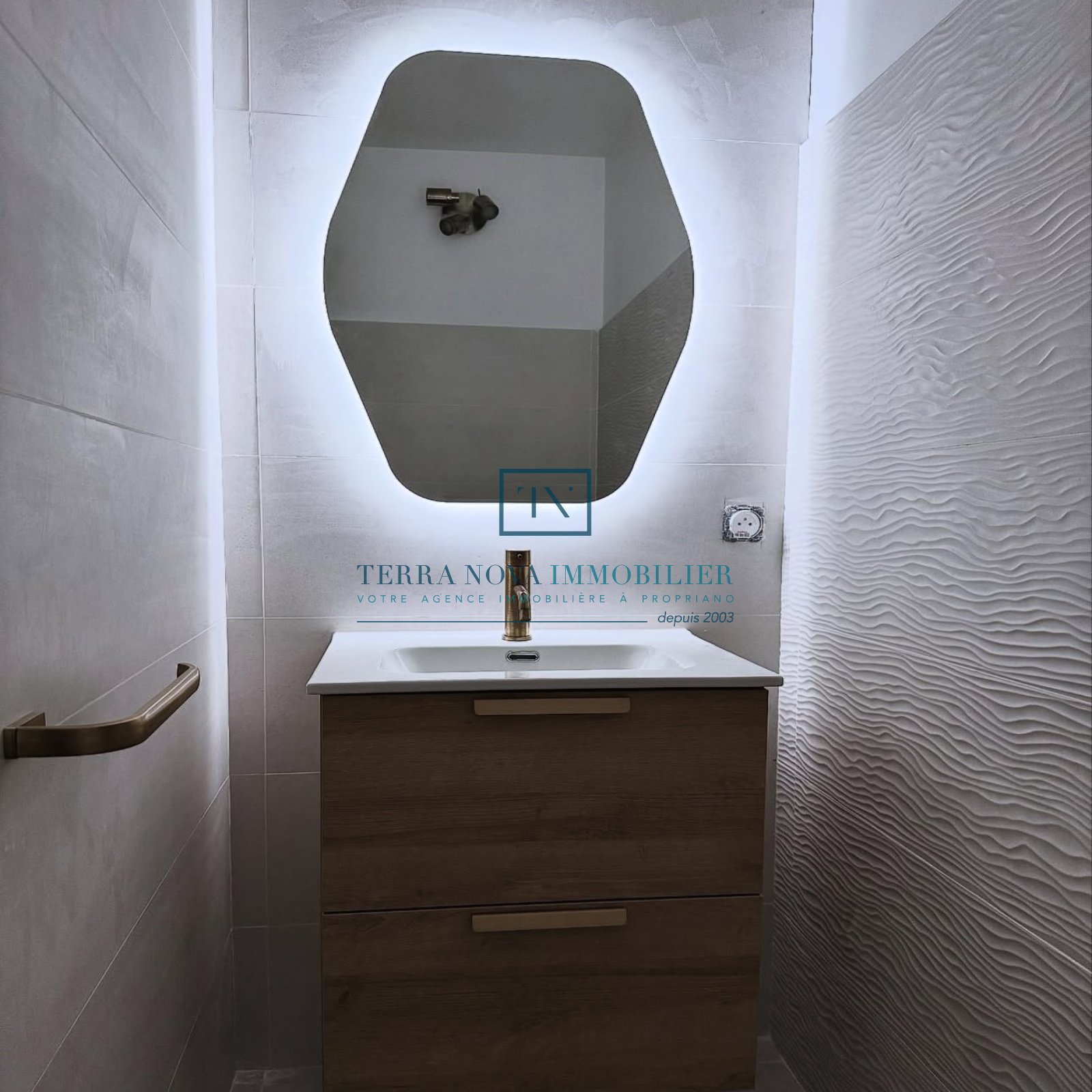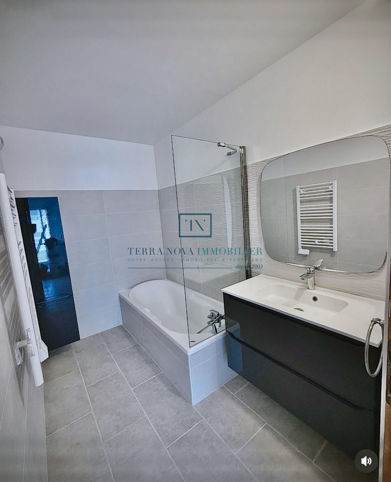 Le logement dispose également d’une deuxième salle de bain et d’un toilette séparé.