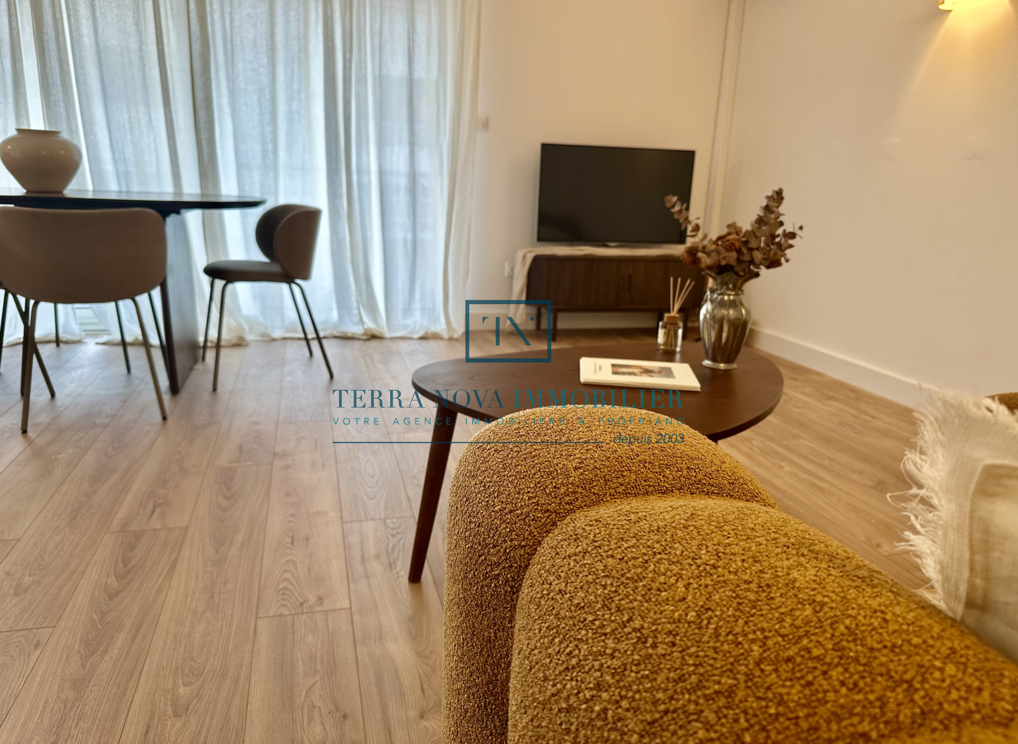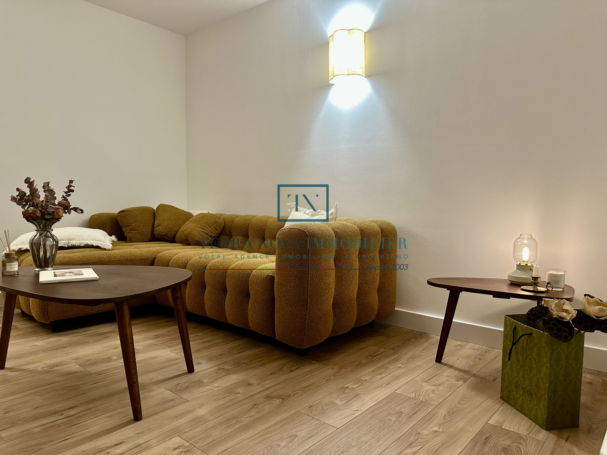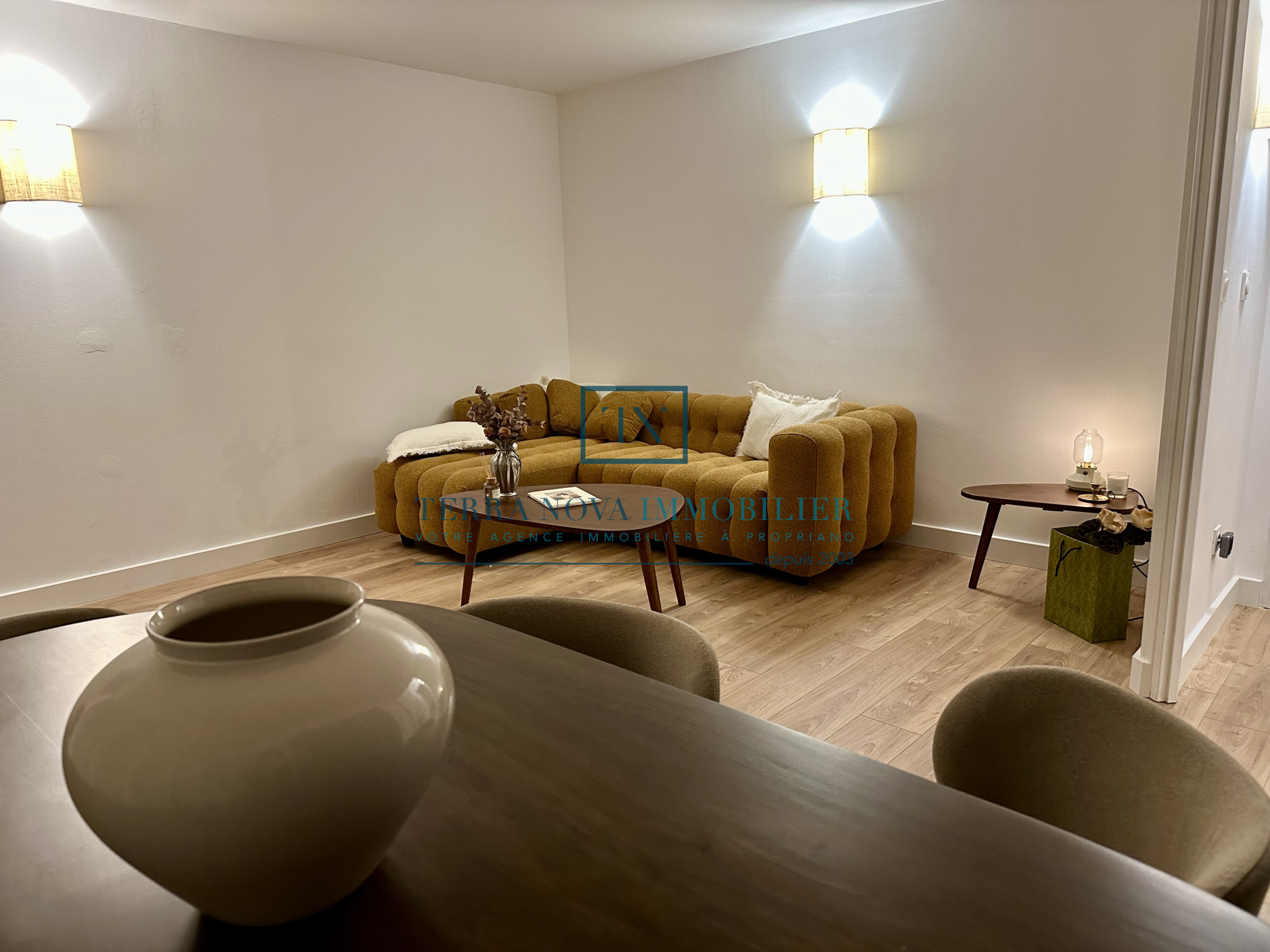 Appartement de 90m2 climatisé et très lumineux, au 3ème étage sans ascenseur d’un immeuble en plein centre ville. Le logement entièrement rénové se compose d’un séjour ouvert sur la cuisine, une grande terrasse vue mer avec salon de jardin, coin repas et plancha.