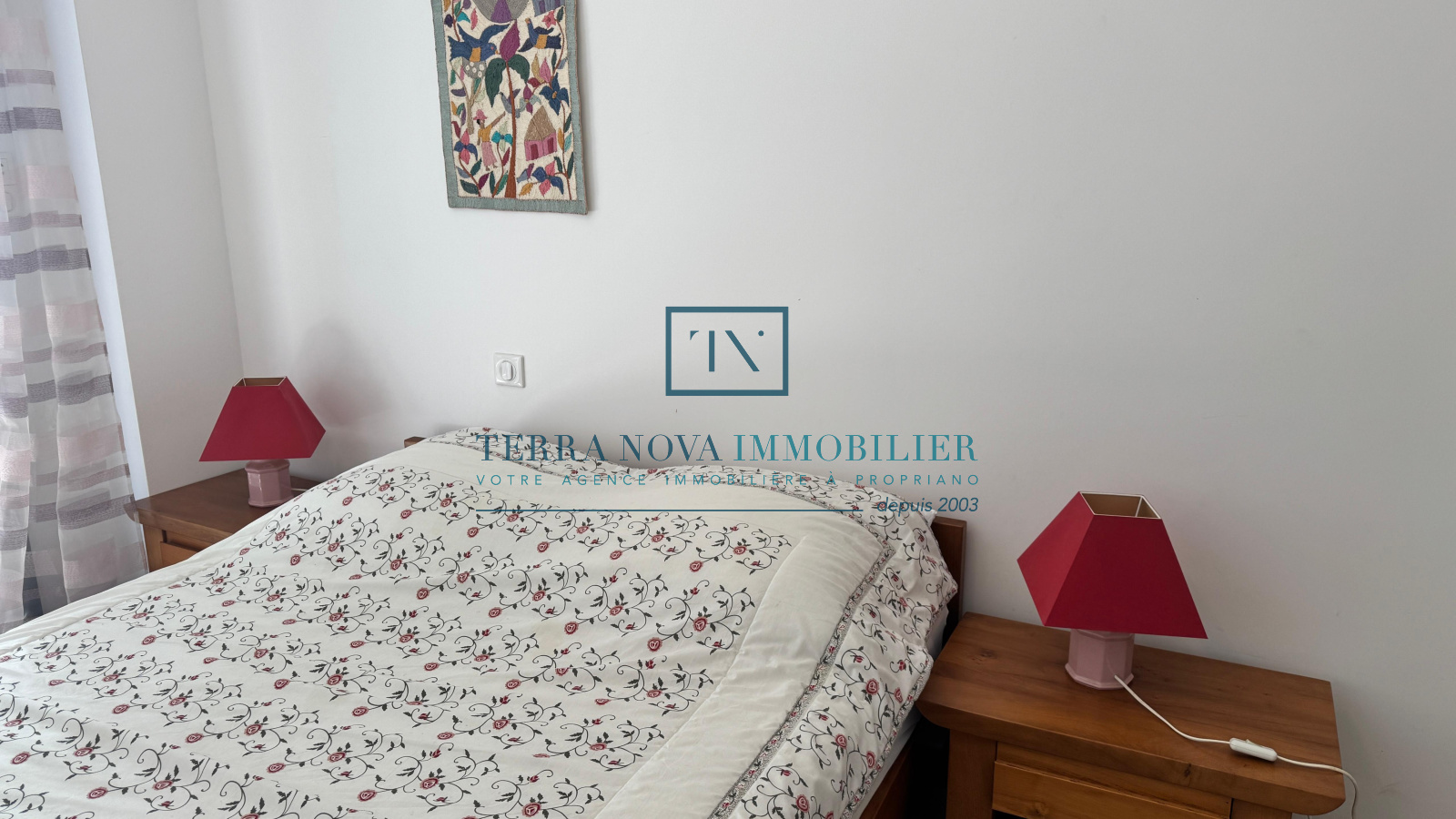Le logement dispose également d’une spacieuse terrasse d’environ 42 m², idéale pour profiter des repas en extérieur et du climat méditerranéen.