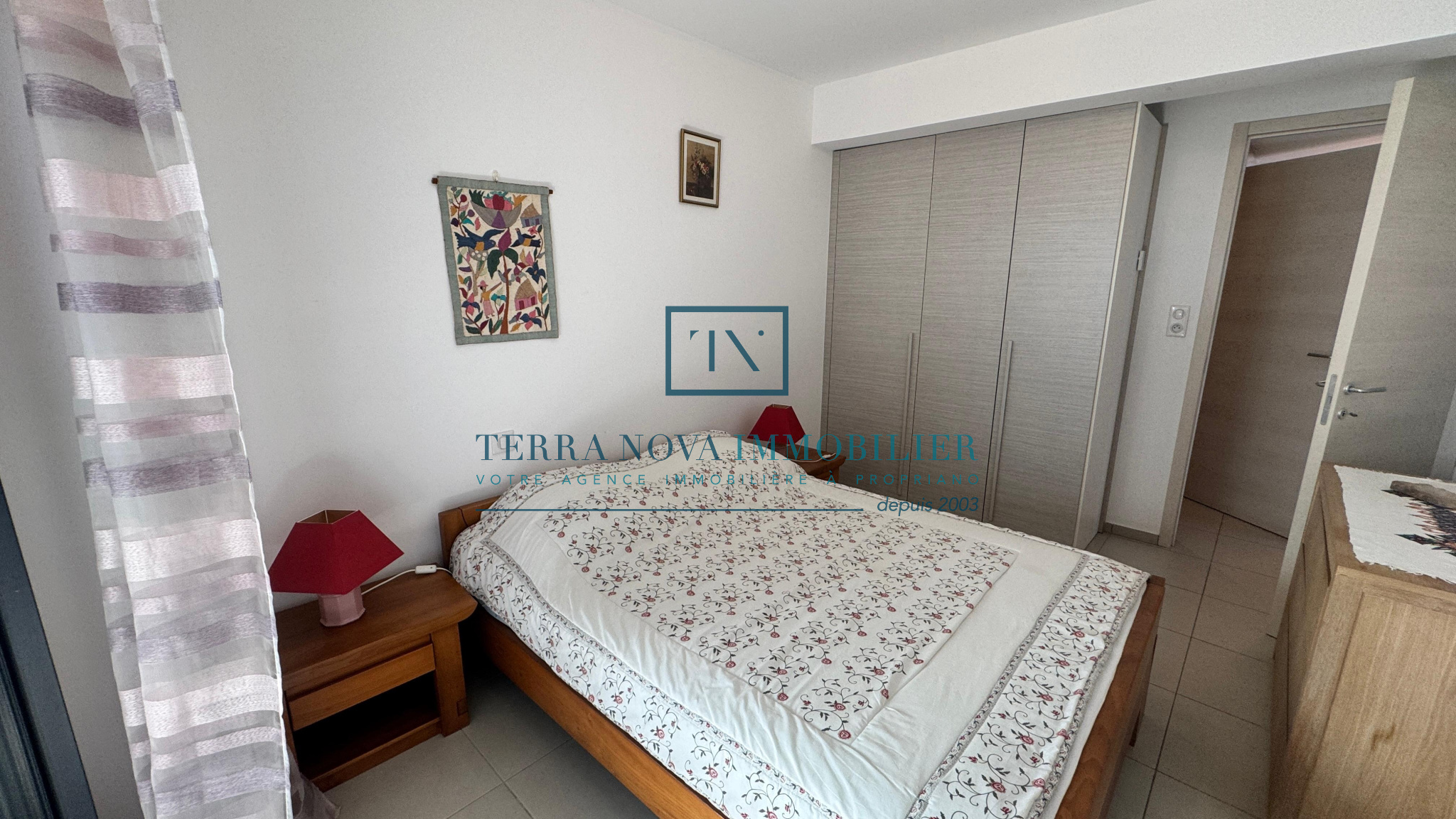 L’appartement se compose d'un salon lumineux avec coin cuisine équipée, de deux chambres avec couchage en 140X190, d'une salle d’eau avec WC, d'une grande terrasse pour vos moments de détente et d'une place de stationnement privative