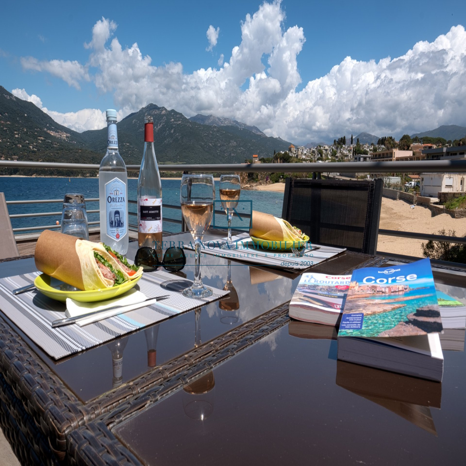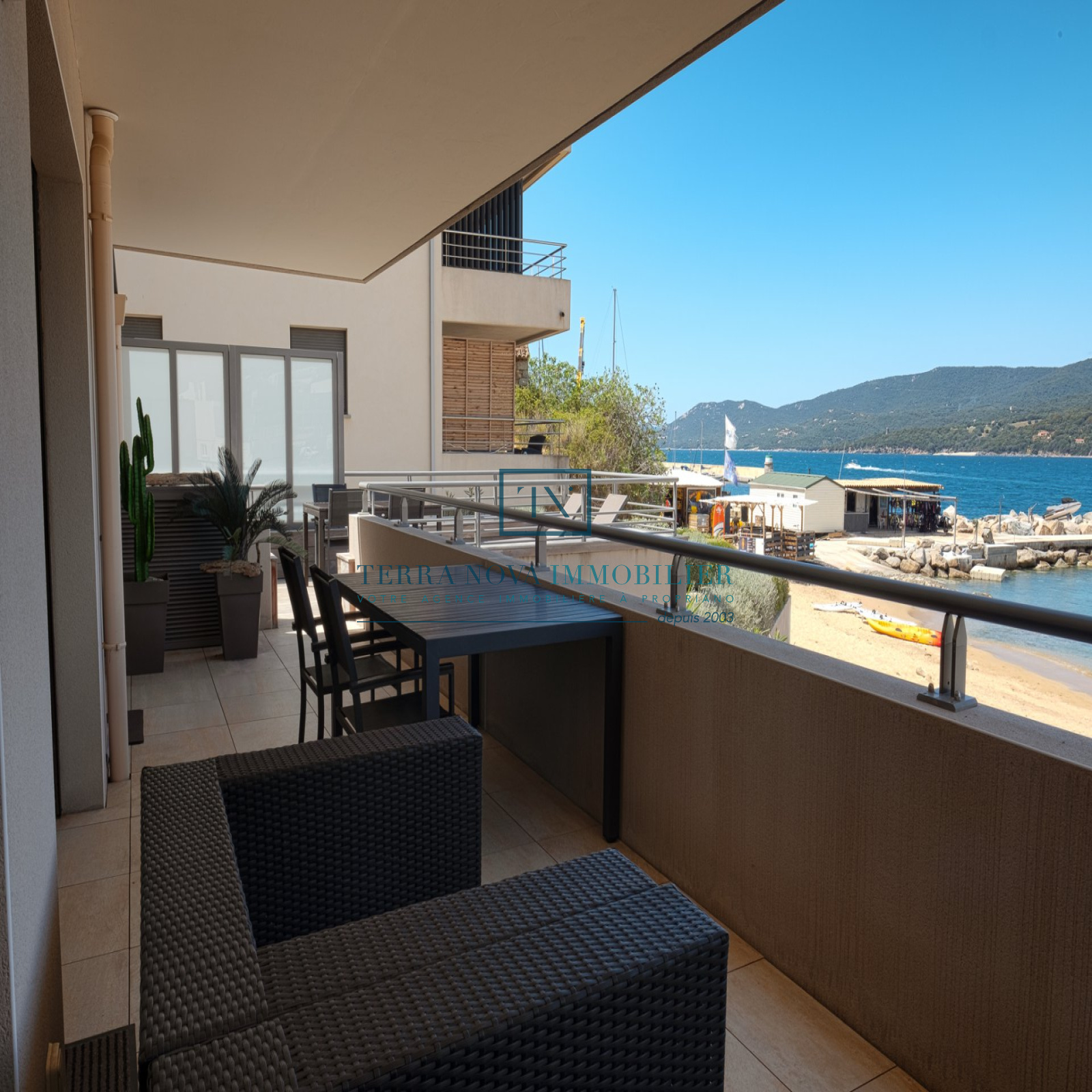 Au 1er étage sur mer, dans une résidence privée en front de mer, site privilégié dans le Golfe du Valinco, Un appartement climatisé, tout confort et entièrement équipé, d'une capacité de 4 couchages, composé d'une cuisine ouverte sur salon, de deux chambres (1 en 140 et 1 en 160), d'une salle d'eau et un cabinet de toilettes indépendant. Une terrasse couverte de 22 m2 et une autre ouverte de 18 m2 avec vue panoramique sur mer. Accès à la plage depuis votre appartement par ascenseur, Parking privatif dans la résidence. Accès immédiat aux clubs de voiles et aux locations de bateaux, jet ski, taxi boat..... Proximité du Port de Plaisance et de tous commerces. Localisation permettant de rayonner sur le Sud de la Corse (à 1 h 30 de Bonifacio, Porto Vecchio ou Ajaccio).