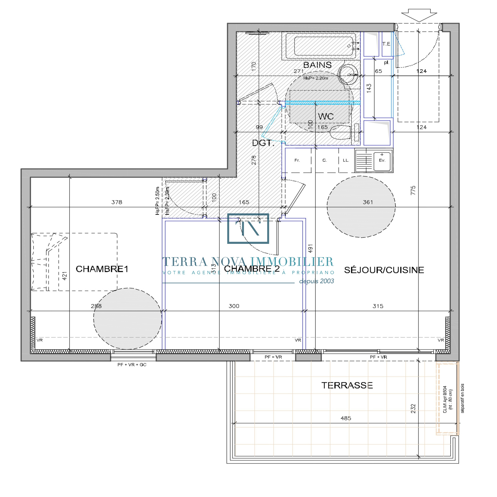 Ce bien se compose d'une cuisine ouverte sur salon-séjour, de deux chambres, d'une salle d'eau, d'un WC séparé et d'une terrase de 11.19m².