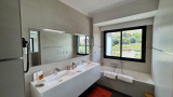 La suite parentale, avec sa vue imprenable sur la mer, est un véritable écrin de sérénité, agrémentée d’un grand dressing et d’une salle de bain spacieuse équipée d’une baignoire, d’une douche et d’un cabinet de toilettes.
