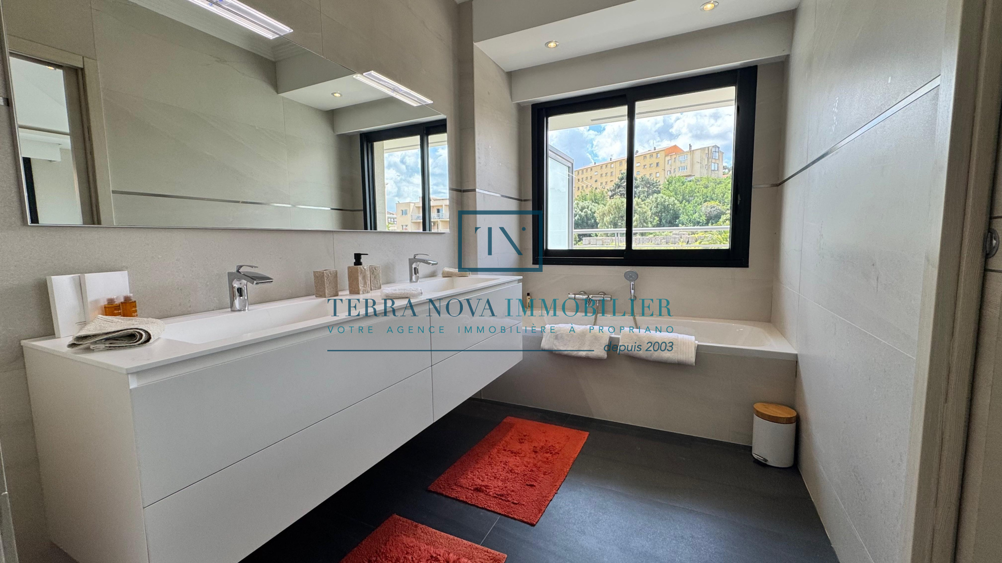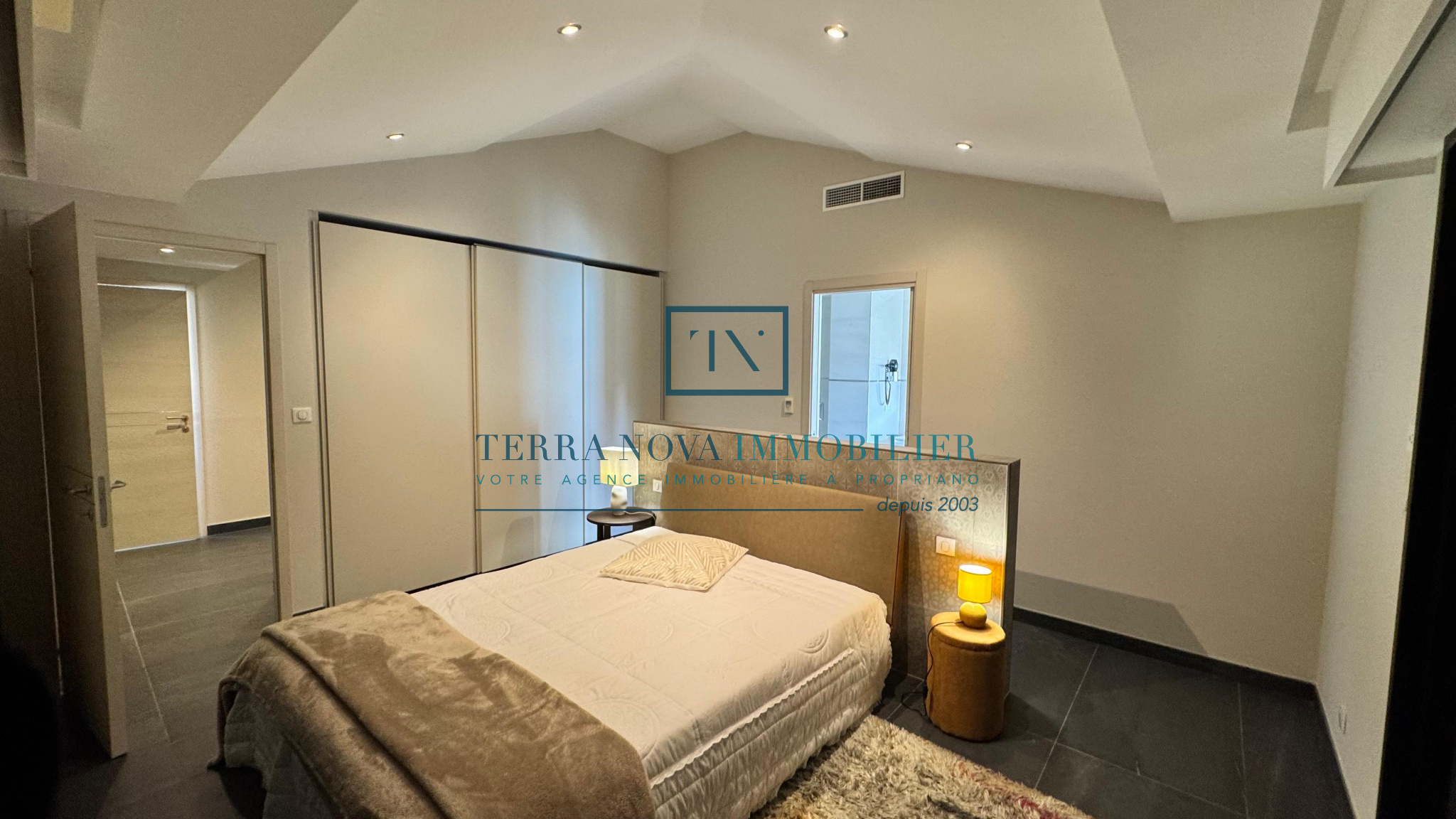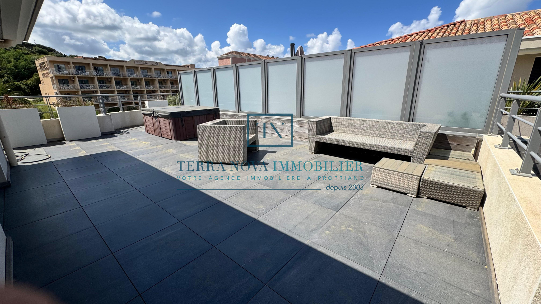 Les prestations haut de gamme de cette villa sur toit créent un équilibre parfait entre esthétique et fonctionnalité, une vaste terrasse extérieure constitue un véritable havre de paix, idéal pour admirer les couchers de soleil et savourer l’atmosphère unique du Valinco.