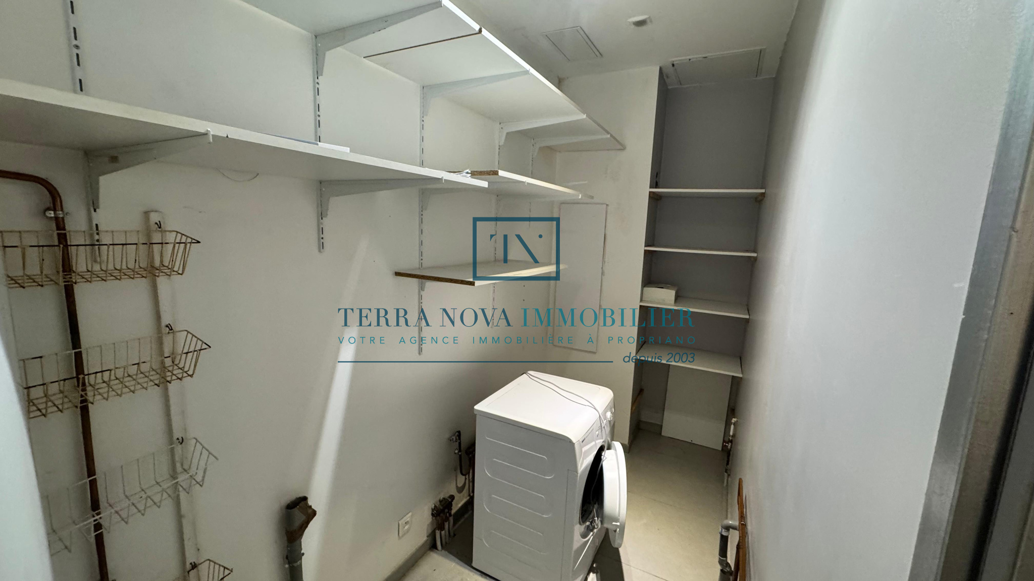 Salle d'eau fonctionnelle- Buanderie pour plus de praticité- Place de stationnement extérieure immédiate pour une arrivée facile