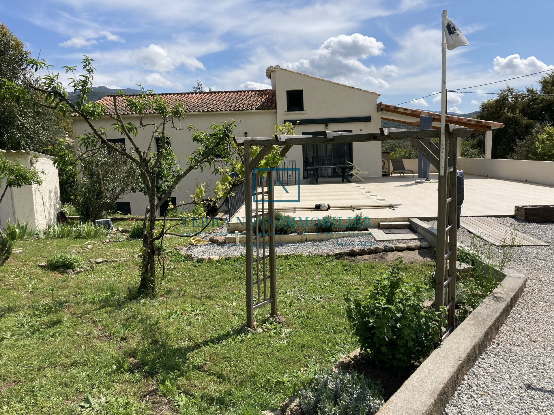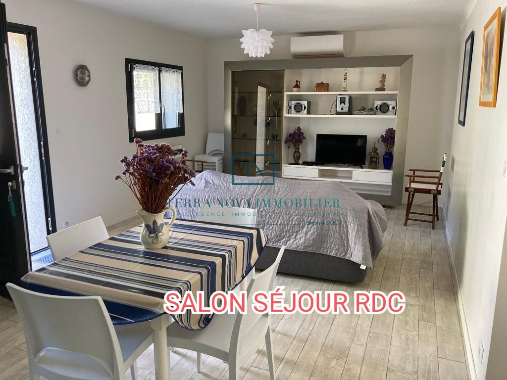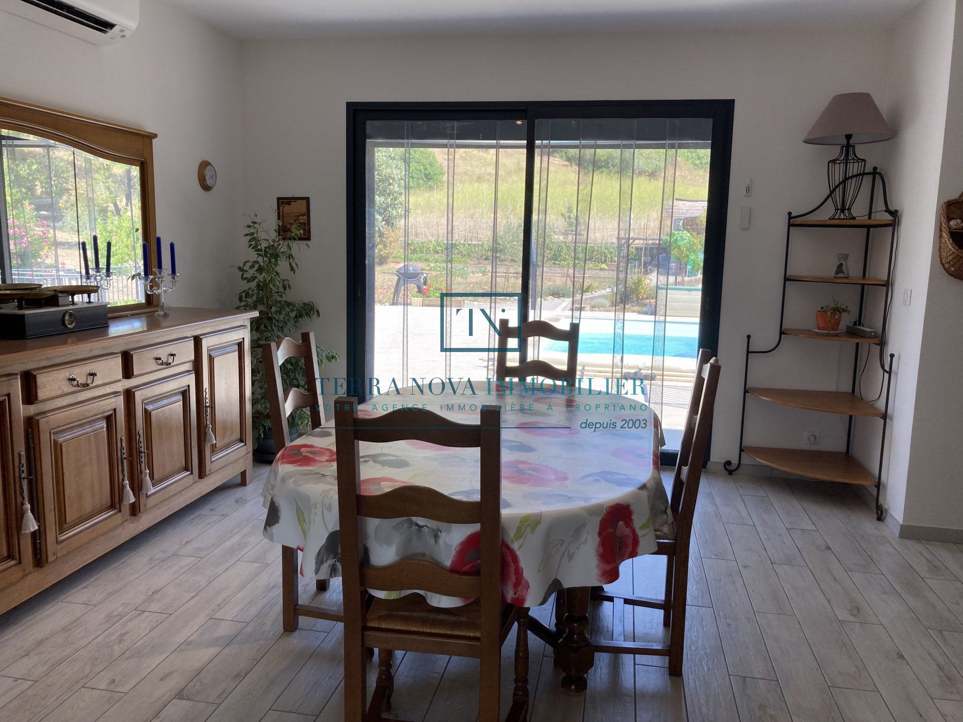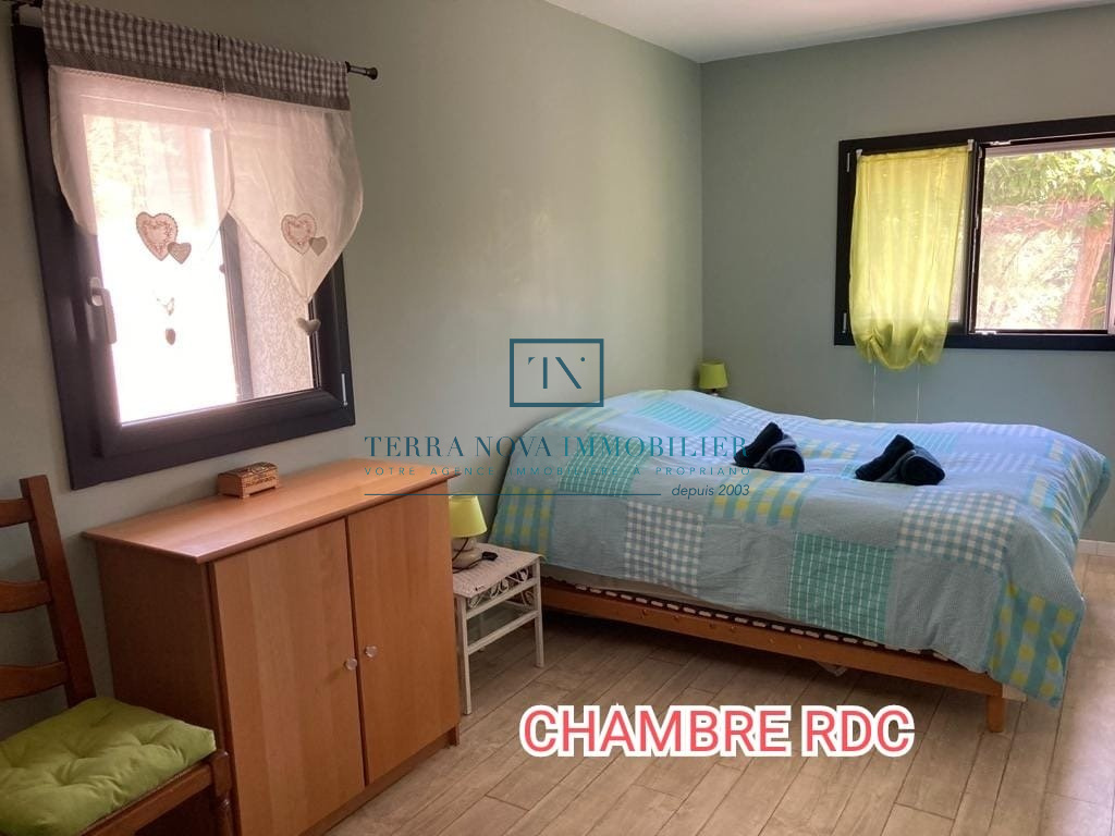 Superbe propriété sur deux niveaux d'une surface habitable d'environ 203 m². Elle se compose au rez-de-chaussée d'un salon avec cuisine ouverte, d'une chambre et d'une salle d'eau. A l'étage, vous bénéficierez d'une grande cuisine ouverte sur le séjour offrant un accès direct à une terrasse extérieure avec piscine. Un grand patio complète le séjour avec une vue dégagée et panoramique. Vous trouverez également 3 chambres d'un beau volume, une salle d'eau et un toilette indépendant. La villa a été bâtie sur un terrain arboré de plus de 2000m² et tout a été pensé pour profiter pleinement du cadre et de la fonctionnalité. L'accès dans la propriété se fait part un portail électrique et vous accèderez au garage. Juste à côté se trouve une grande réserve pouvant servir de buanderie ou bien de cellier ainsi qu'un accès direct à l'intérieur de la maison. Construction récente, aucun travaux à prévoir, entièrement climatisée.