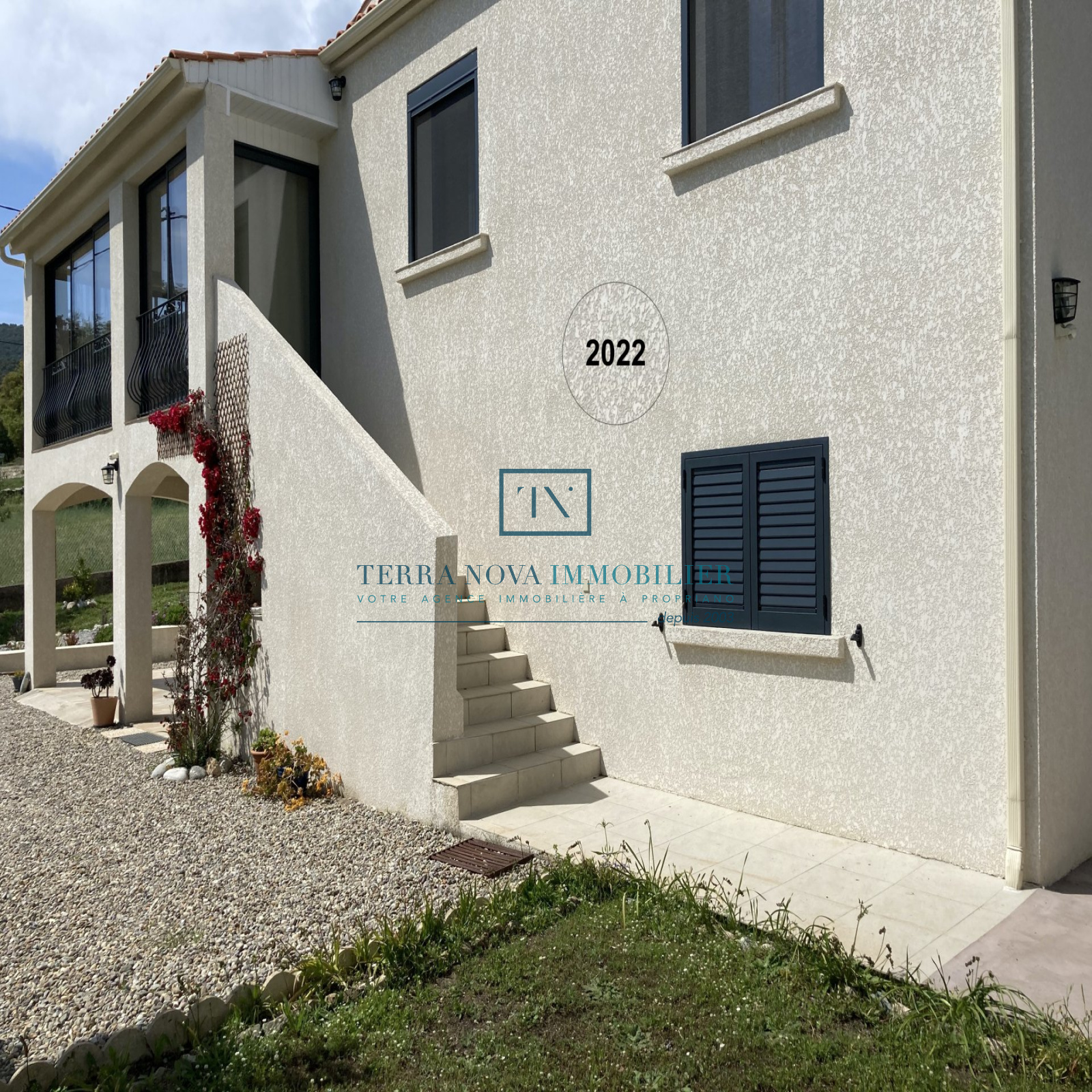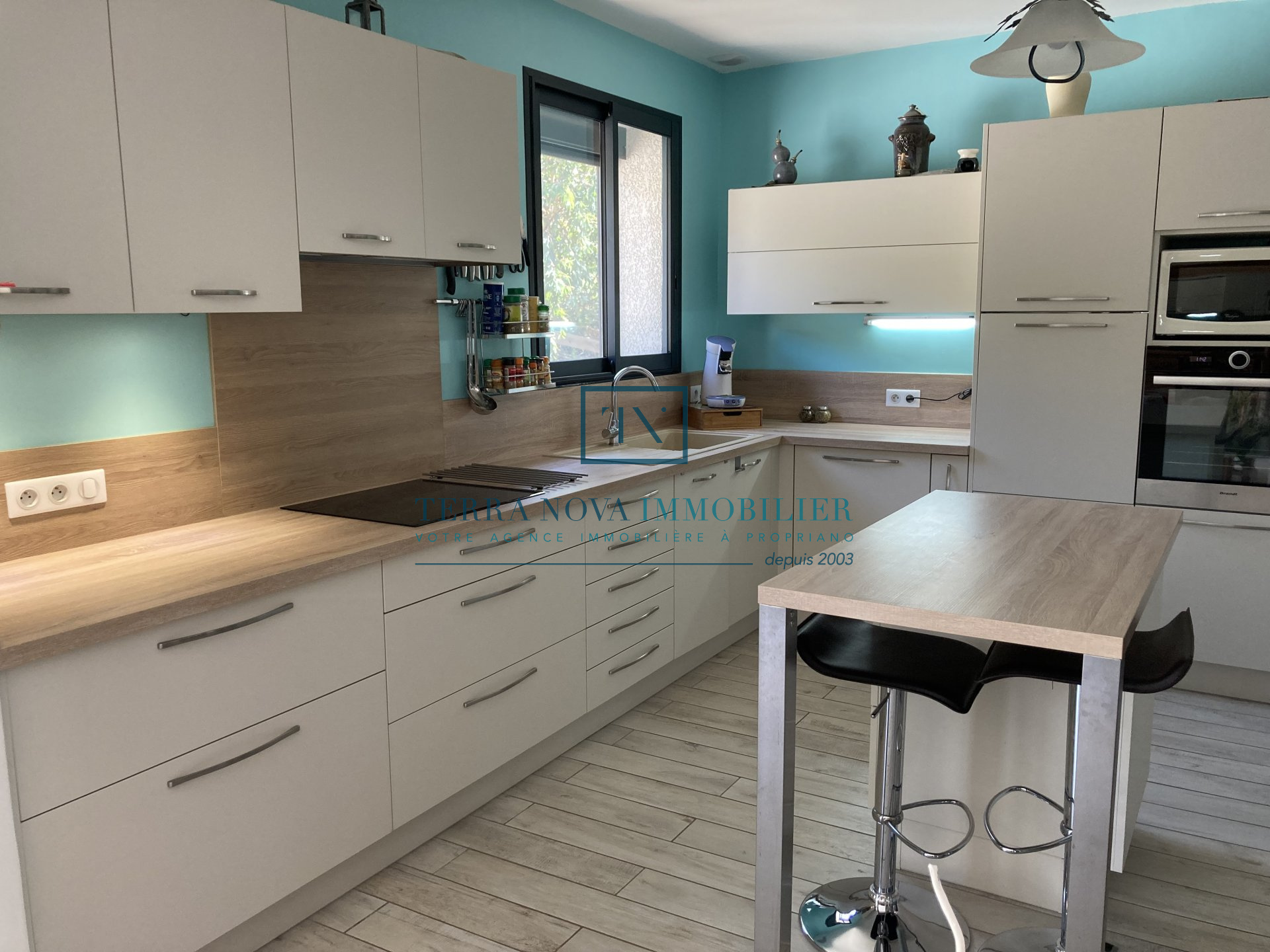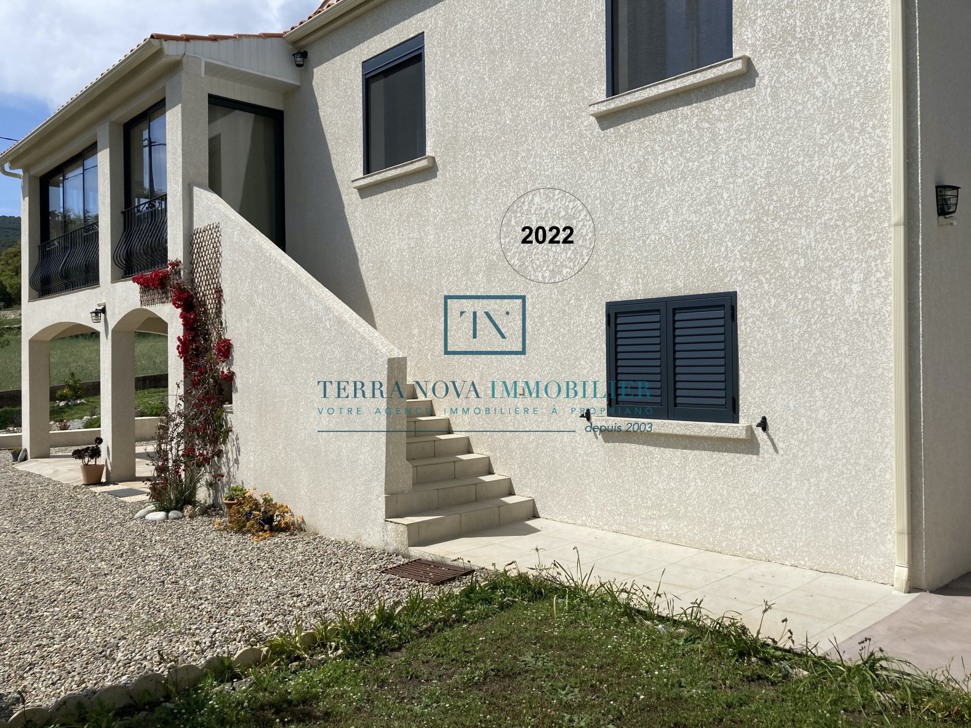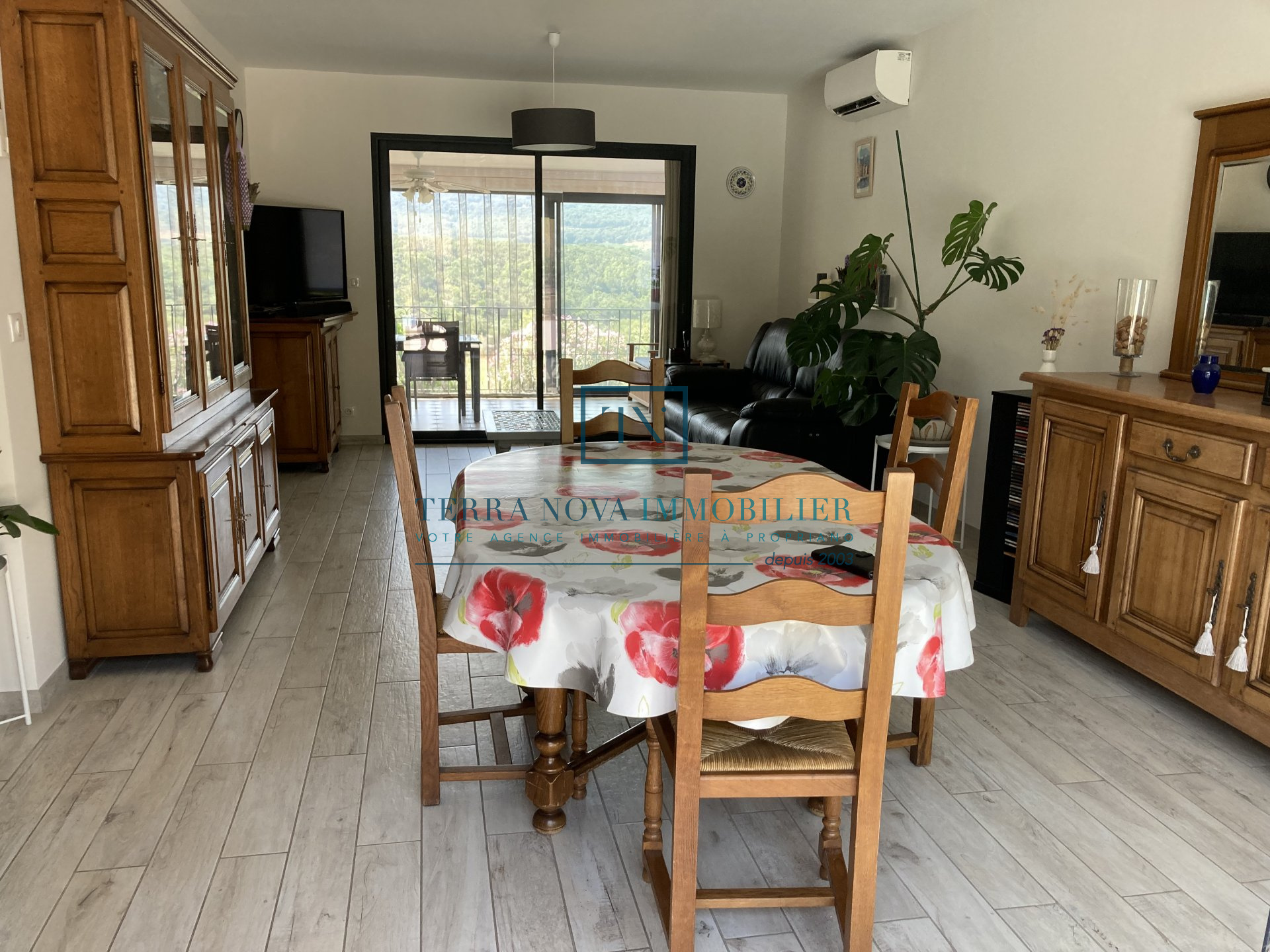 Superbe propriété sur deux niveaux d'une surface habitable d'environ 203 m². Elle se compose au rez-de-chaussée d'un salon avec cuisine ouverte, d'une chambre et d'une salle d'eau. A l'étage, vous bénéficierez d'une grande cuisine ouverte sur le séjour offrant un accès direct à une terrasse extérieure avec piscine. Un grand patio complète le séjour avec une vue dégagée et panoramique. Vous trouverez également 3 chambres d'un beau volume, une salle d'eau et un toilette indépendant. La villa a été bâtie sur un terrain arboré de plus de 2000m² et tout a été pensé pour profiter pleinement du cadre et de la fonctionnalité. L'accès dans la propriété se fait part un portail électrique et vous accèderez au garage. Juste à côté se trouve une grande réserve pouvant servir de buanderie ou bien de cellier ainsi qu'un accès direct à l'intérieur de la maison. Construction récente, aucun travaux à prévoir, entièrement climatisée.